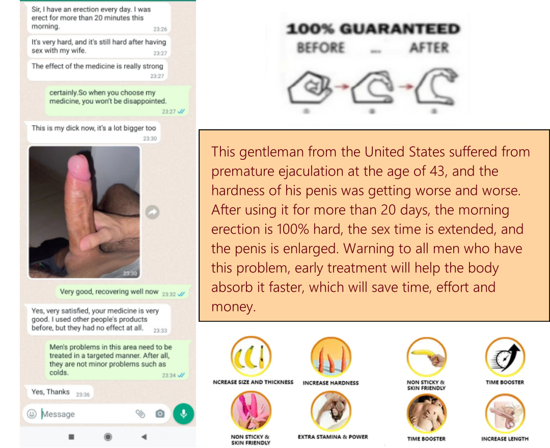 “I have had problems with impotence for many years. Because of this problem, my wife was not sexually satisfied and cheated on her. Until by chance, I saw this product on Facebook and tried to use it. It brought me back to my youthful state and my erection was very strong. Thank you for this product that gave me the confidence to regain my manhood.”